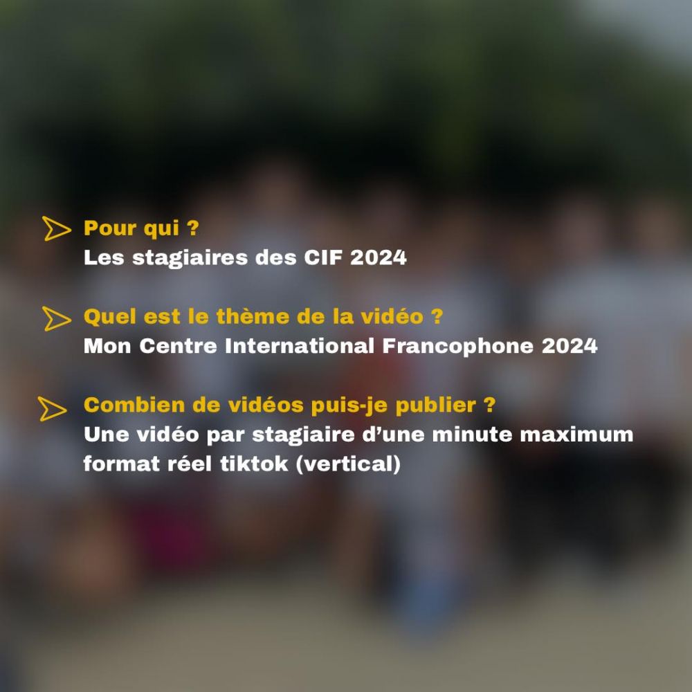 Le thème du concours est "Mon Centre International Francophone 2024" et devra prendre la forme d'une vidéo d'une minute publiée sur instagram, avant le 30 septembre.