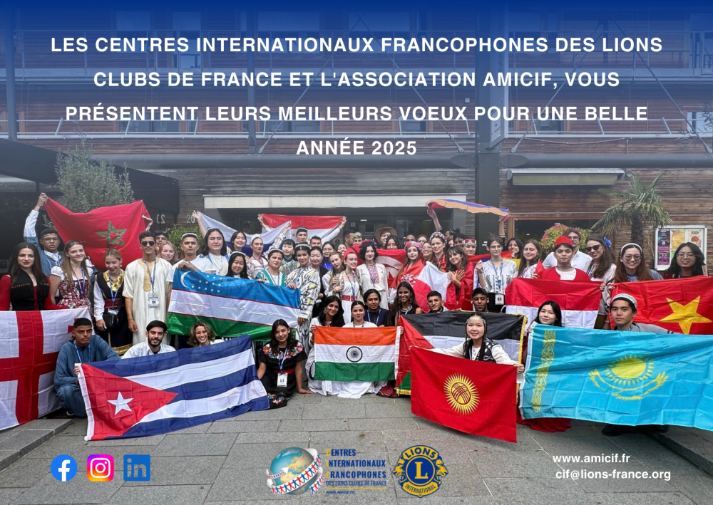 Les équipes des Centres Internationaux Francophones des Lions Clubs de France, ainsi que l'équipe de l'AMICIF vous présentent leurs meilleurs voeux pour l'année 2025 !